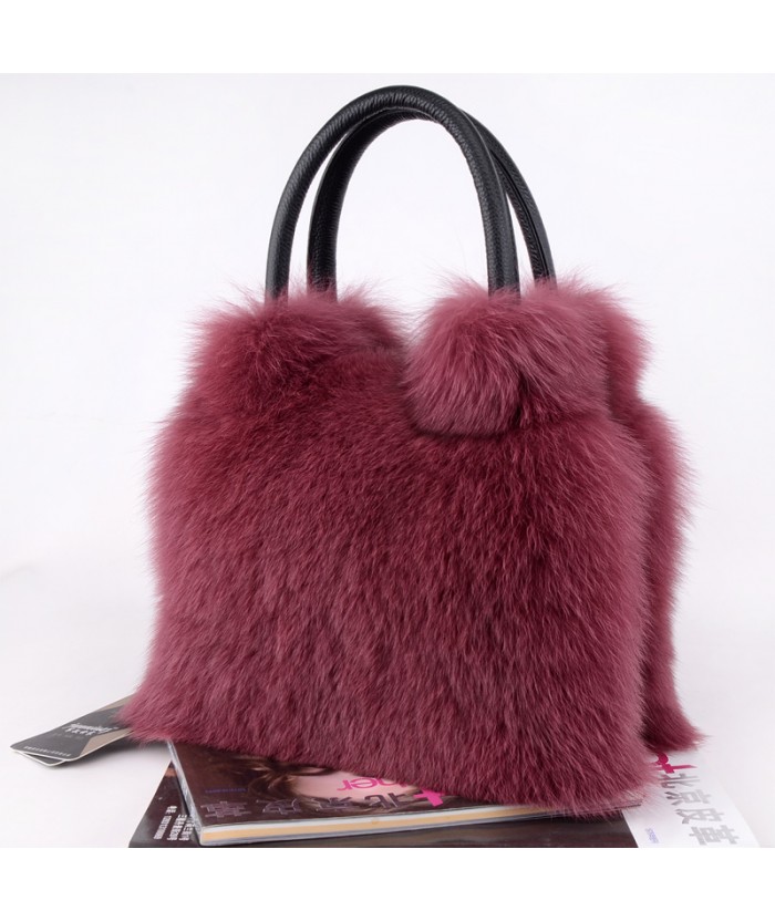 Frauen Echtes Fuchspelz Tasche Ladies Hand Tote Umhängetaschen für echtes Leder Design Umhängetasche Rindsleder