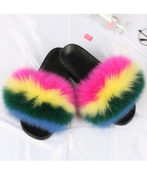 Women Fur Slippers Real Fox Fur Slides Ladies Home Furry Flat Sandals Female Cute Fluffy Beach