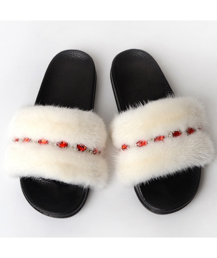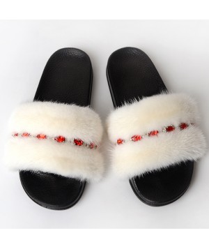 Zapatillas de mujer Diapositivas de pelo de visón real Sandalias mullidas cálidas para interiores Mujer al aire libre