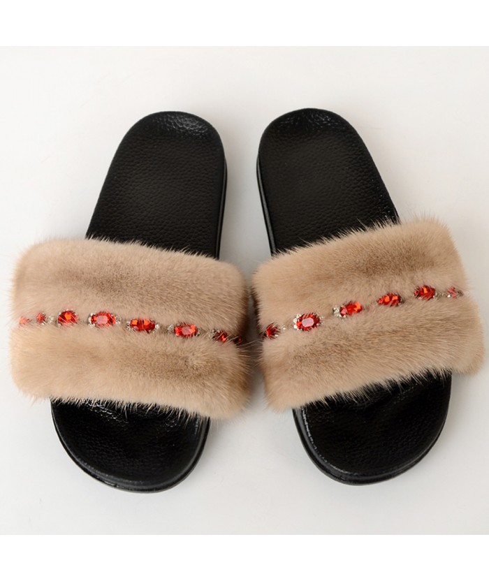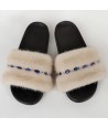 Zapatillas de mujer Diapositivas de pelo de visón real Sandalias mullidas cálidas para interiores Mujer al aire libre
