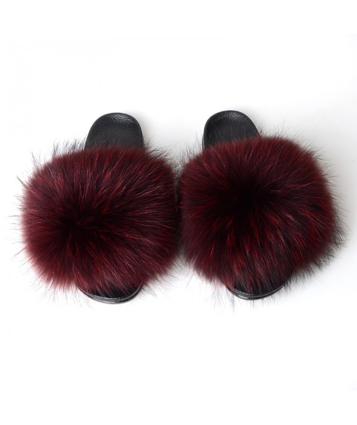Diapositivas de pelo de mapache real Sandalias de pelo de zorro