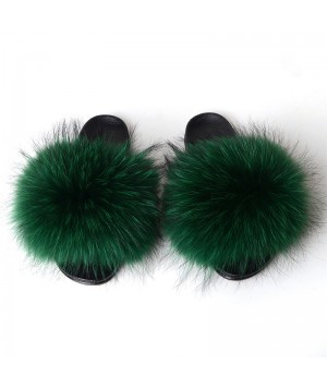 Diapositivas de pelo de mapache real Sandalias de pelo de zorro