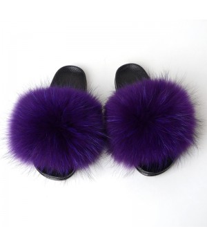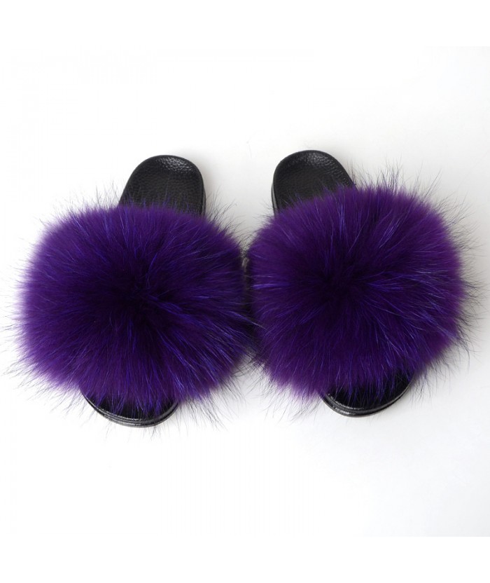Diapositivas de pelo de mapache real Sandalias de pelo de zorro