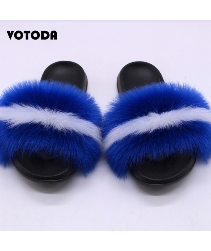 Zapatillas de mujer Diapositivas de pelo de zorro real Sandalias planas peludas para el hogar Playa linda y esponjosa para mujer