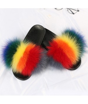 Zapatillas de mujer Diapositivas de pelo de zorro real Sandalias planas peludas para el hogar Playa linda y esponjosa para mujer