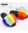 Zapatillas de mujer Diapositivas de pelo de zorro real Sandalias planas peludas para el hogar Playa linda y esponjosa para mujer