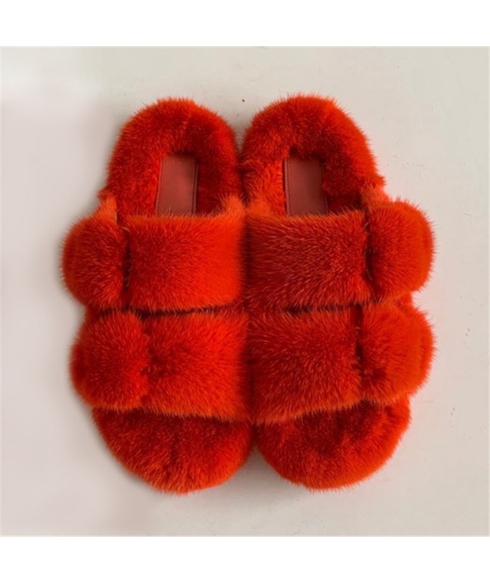 Mujer Invierno Otoño Otoño Pelo de visón real Zapatillas mullidas Diapositivas Sandalias con gemas