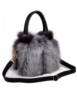 Mujeres Pelo de zorro real Bolso de mano para mujer Bolsos bandolera para cuero genuino Bolso bandolera piel de vacuno