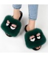 Femmes monstre tongs pantoufles drôles moelleux réel fourrure de renard diapositives vison sandale plat antidérapant