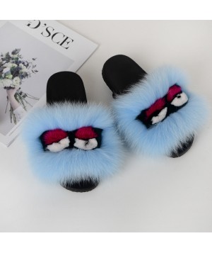 Femmes monstre tongs pantoufles drôles moelleux réel fourrure de renard diapositives vison sandale plat antidérapant