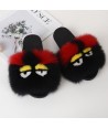 Femmes monstre tongs pantoufles drôles moelleux réel fourrure de renard diapositives vison sandale plat antidérapant
