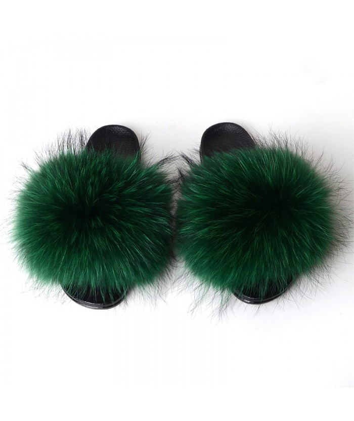 Vera pelliccia di procione diapositive sandali in pelliccia di volpe