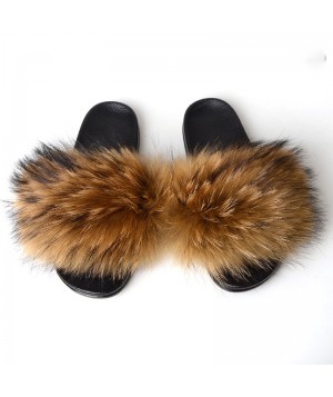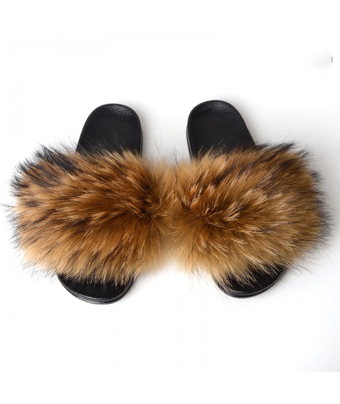 Vera pelliccia di procione diapositive sandali in pelliccia di volpe
