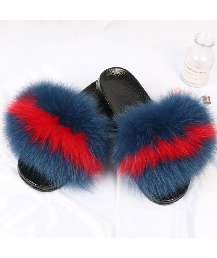 Pantofole da donna in vera pelliccia di volpe diapositive casa sandali piatti pelosi femmina carino spiaggia soffice